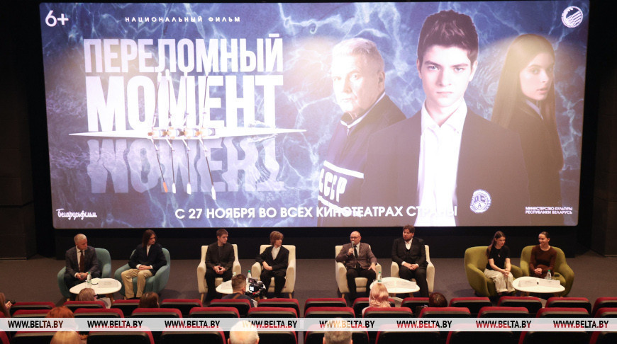 В кинотеатре "Москва" проходит пресс-показ национального фильма "Переломный момент" при участии представителей съемочной группы, передает корреспондент БЕЛТА.Режиссер-постановщик Дмитрий Сорока отметил, что за 15 минут до пресс-показа отдал фильм в кинотеатры, и напомнил, что его можно будет увидеть с 27 ноября во всех кинотеатрах страны. "Мы до самого последнего момента, каждый часок, каждую минутку использовали, чтобы дошлифовать постпродакшн: доделать музыку - сделать ее более плотной, более динамичной, дошлифовать цветокоррекцию. Даже сейчас на пресс-показе будет еще чуть-чуть шероховатая версия, но она уже почти не отличается от финальной", - рассказал он.