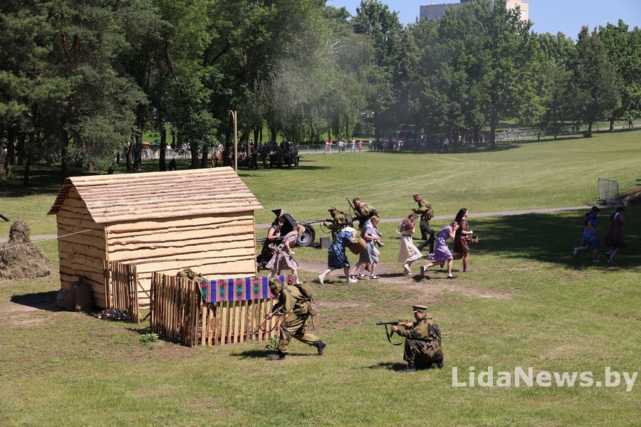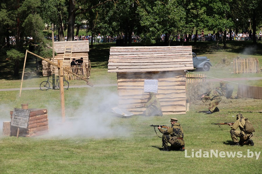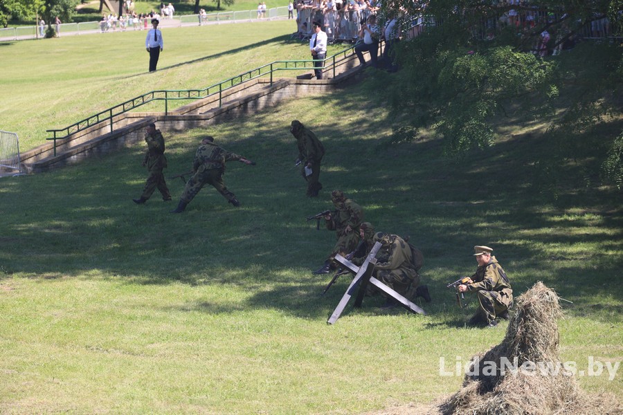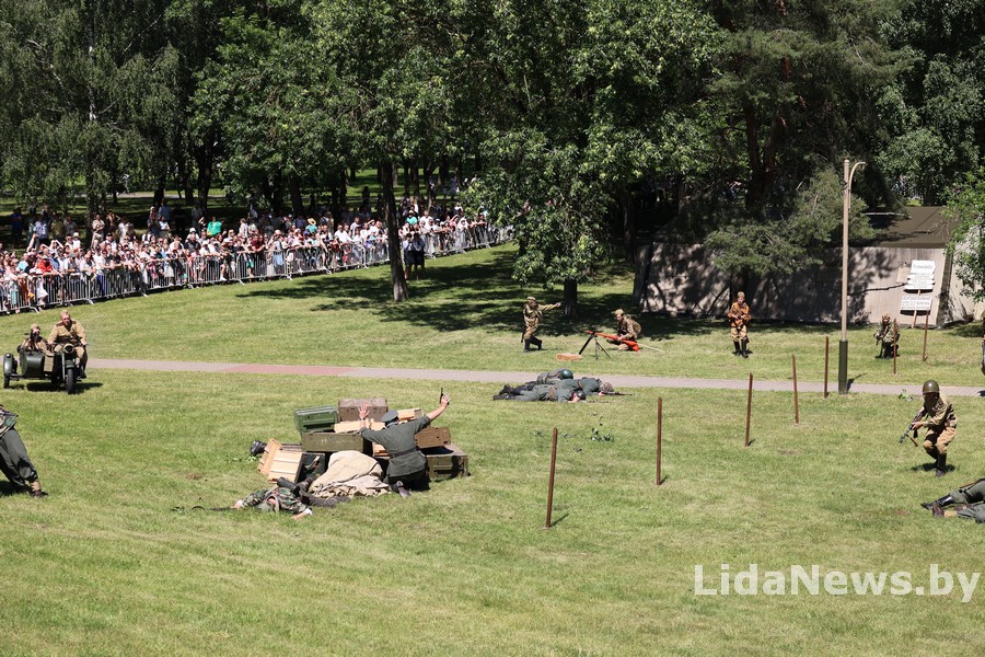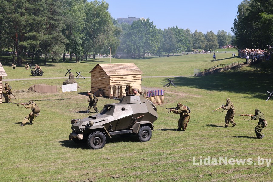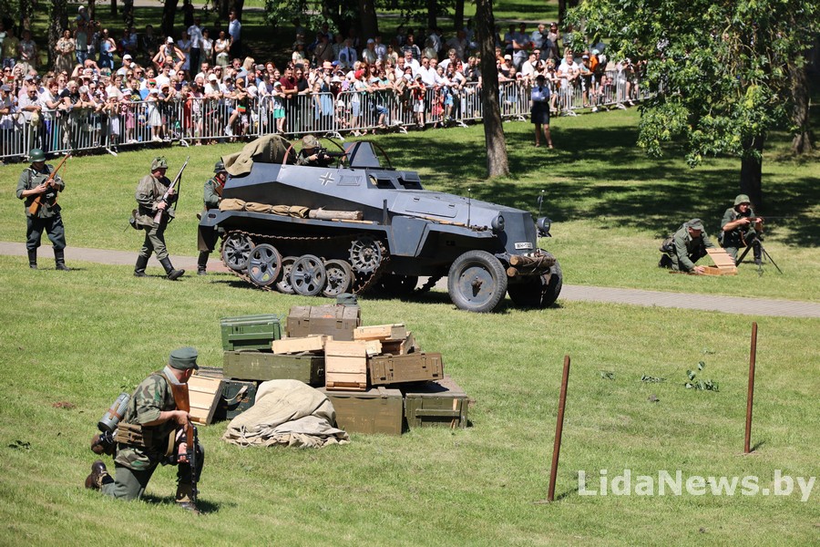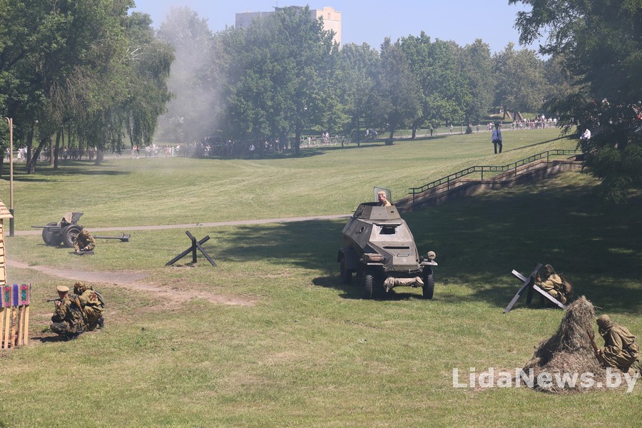 Реконструкция организована Белорусским военно-историческим объединением «Честь мундира» из города Гомеля. В одной из парковых зон кургана вдруг ожили страницы истории: военная техника, грохот орудий, взрывы гранат и стрельба… Как известно, город Лида был освобожден 8 июля 1944 года в течение трех часов в результате стремительной атаки дивизий третьего гвардейского кавалерийского корпуса под командованием генерал-лейтенанта Николая Осликовского. Москва салютовала войскам-освободителям Лиды 12 артиллерийскими залпами из 124 орудий.