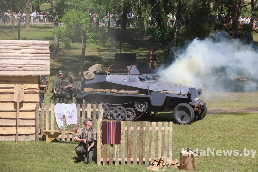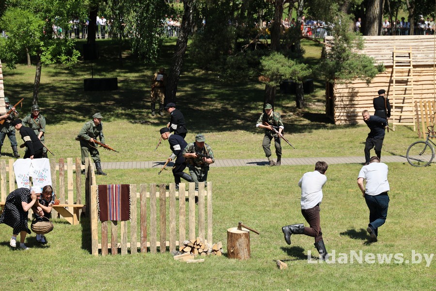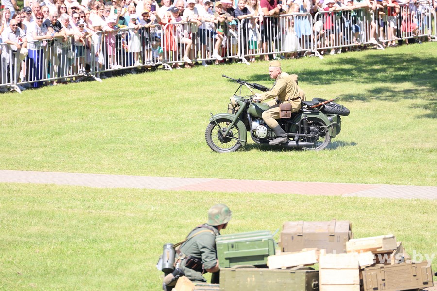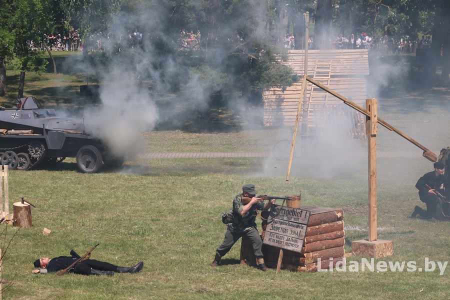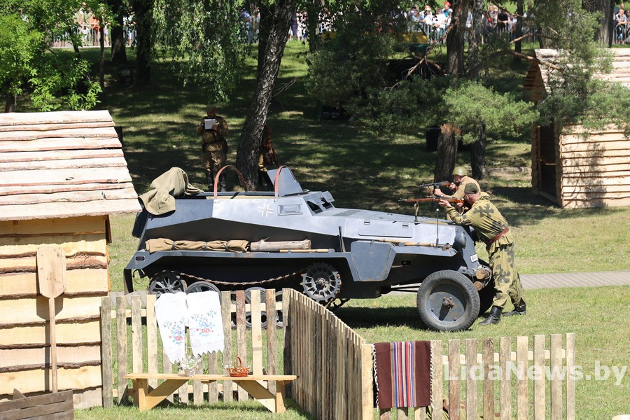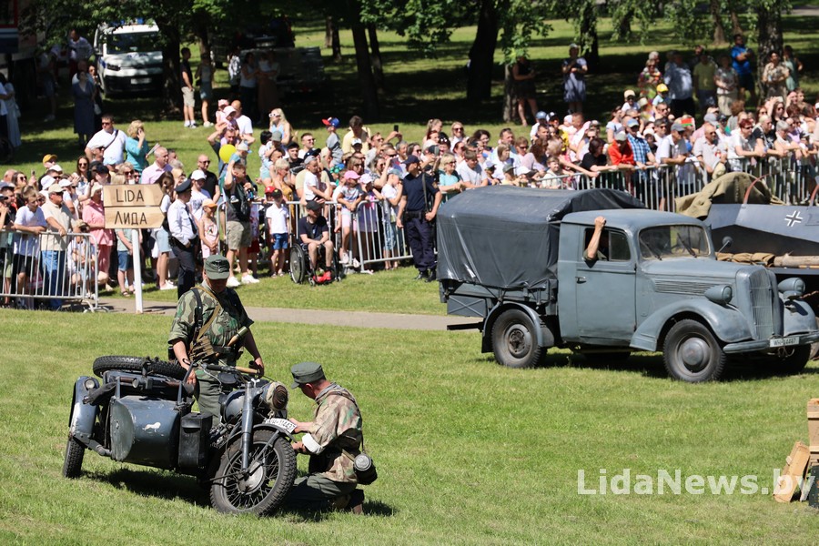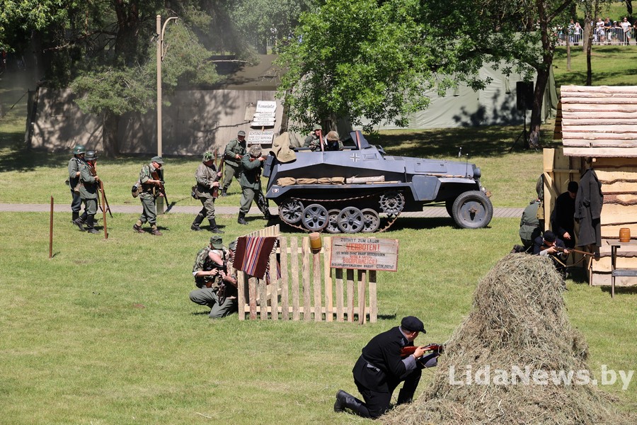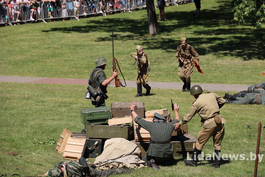 Реконструкция организована Белорусским военно-историческим объединением «Честь мундира» из города Гомеля. В одной из парковых зон кургана вдруг ожили страницы истории: военная техника, грохот орудий, взрывы гранат и стрельба… Как известно, город Лида был освобожден 8 июля 1944 года в течение трех часов в результате стремительной атаки дивизий третьего гвардейского кавалерийского корпуса под командованием генерал-лейтенанта Николая Осликовского. Москва салютовала войскам-освободителям Лиды 12 артиллерийскими залпами из 124 орудий.
