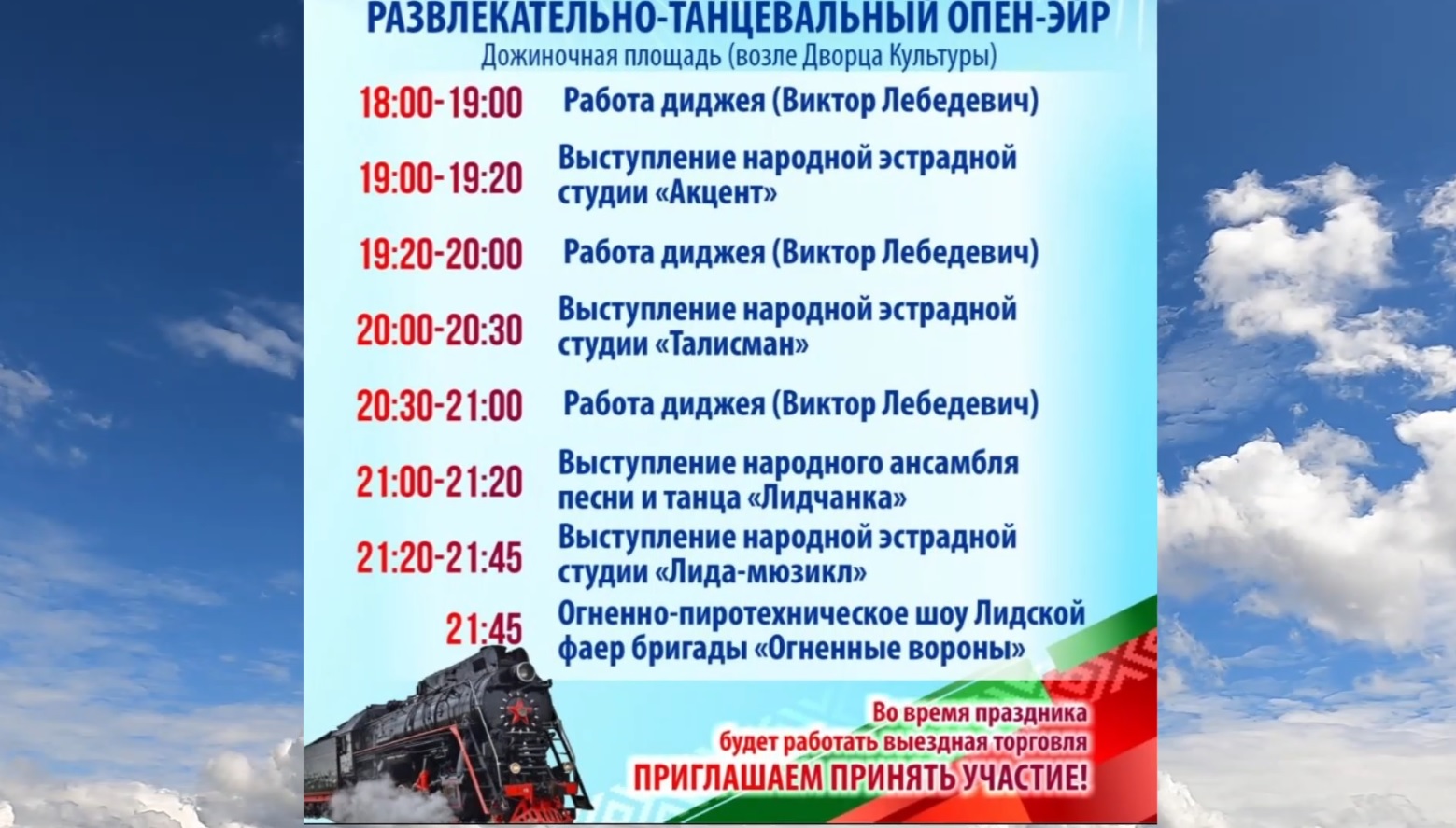 2 августа на Дожиночной площади в Лиде пройдут праздничные мероприятия ко Дню железнодорожника