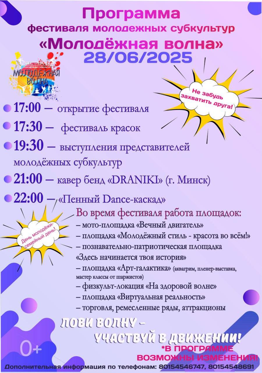 Не пропустите главный молодёжный праздник начала лета! Приходите с друзьями, зарядитесь энергией и создайте незабываемые воспоминания на "Молодёжной волне".