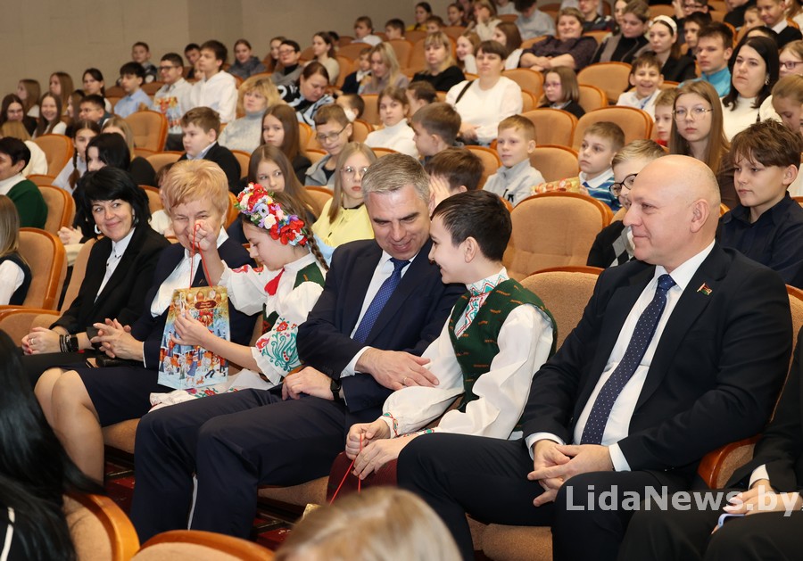 – Прыемна адзначыць, што Лідскі раён палепшыў свае вынікі ў алімпіядным руху. Хачу сказаць самыя шчырыя словы ўдзячнасці тым, хто стаў пераможцам розных спартыўных пляцовак, дабіўся паспехаў у шматлікіх творчых конкурсах. Дзякуй вам вялікі! – сказаў са сцэны кіраўнік рэгіёна прысутным у зале дзецям. – Дарагія сябры, я веру ў тое, што наступны 2026 год будзе не менш выніковым. І ў гэтым вельмі добрай падмогай будзем мы, дарослыя: вашы бацькі, настаўнікі. Навагоднія святы – гэта заўсёды чаканне цуда, і я жадаю ад усёй душы, каб тое, аб чым вы марыце, здзяйснялася. Каб мэты, якія вы кожны дзень перад сабой ставіце, дасягаліся. Мірнага неба нашай краіне, а ў вашых сем’ях няхай пануюць мір і згода!