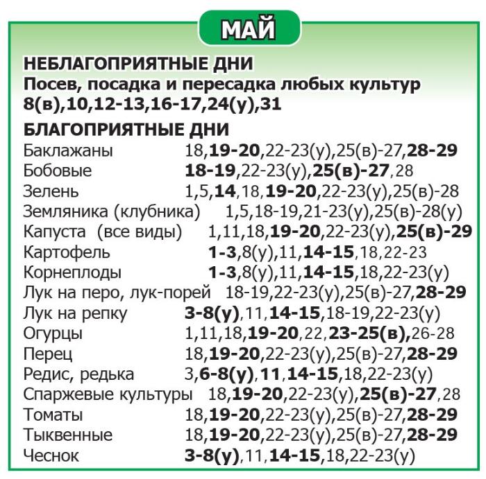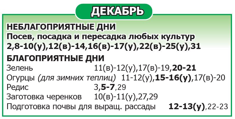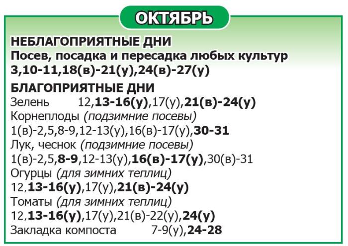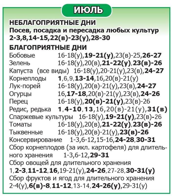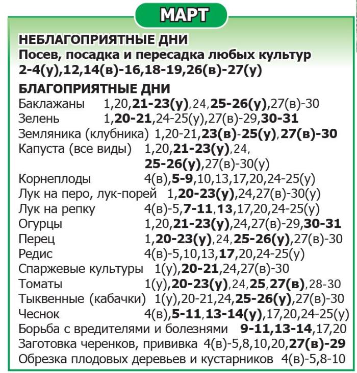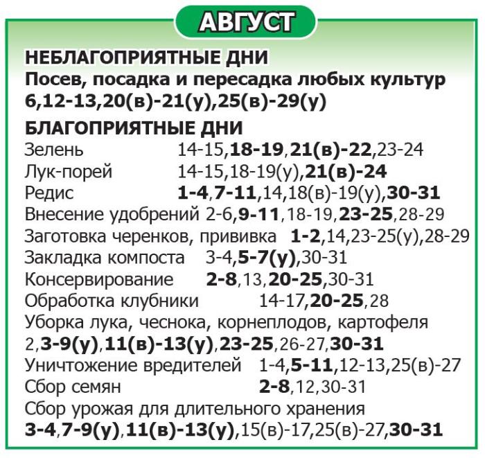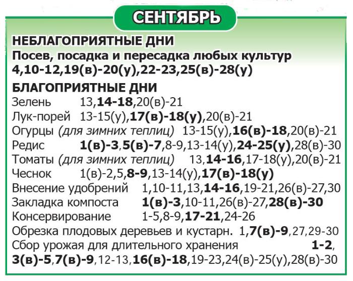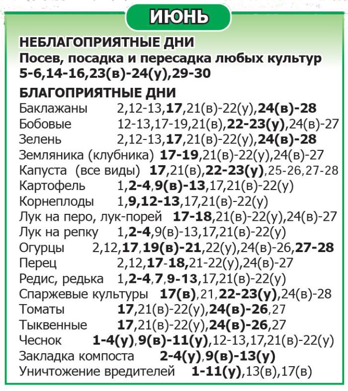 Буквой (у) выделено время до обеда, буквой (в) – после обеда. Дни, не помеченные как благоприятные/неблагоприятные, относятся к нейтральным.