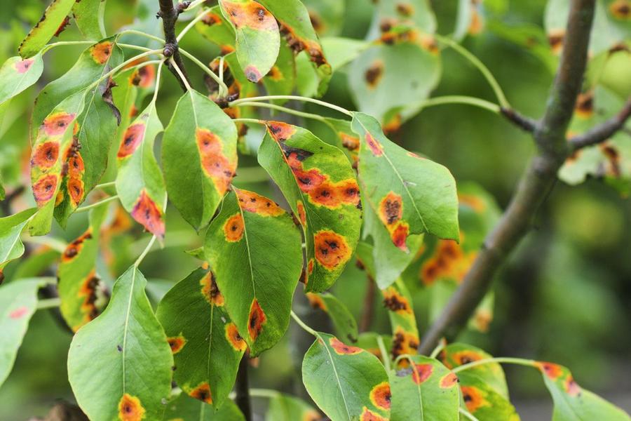 Дело в том, что грибок, вызывающий ржавчину, для своего развития обязательно требует двух хозяев: грушу и можжевельник казацкий. И на каждом из растений образуется определенная стадия грибка. Развившись на можжевельнике, грибок ржавчины образует споры, которые затем заражают грушу. На груше, в свою очередь, образуется другая стадия этого грибка, которая повторно заражает можжевельник. И так по замкнутому кругу. Но можжевельник не может заразить другой можжевельник, а груша — грушу.