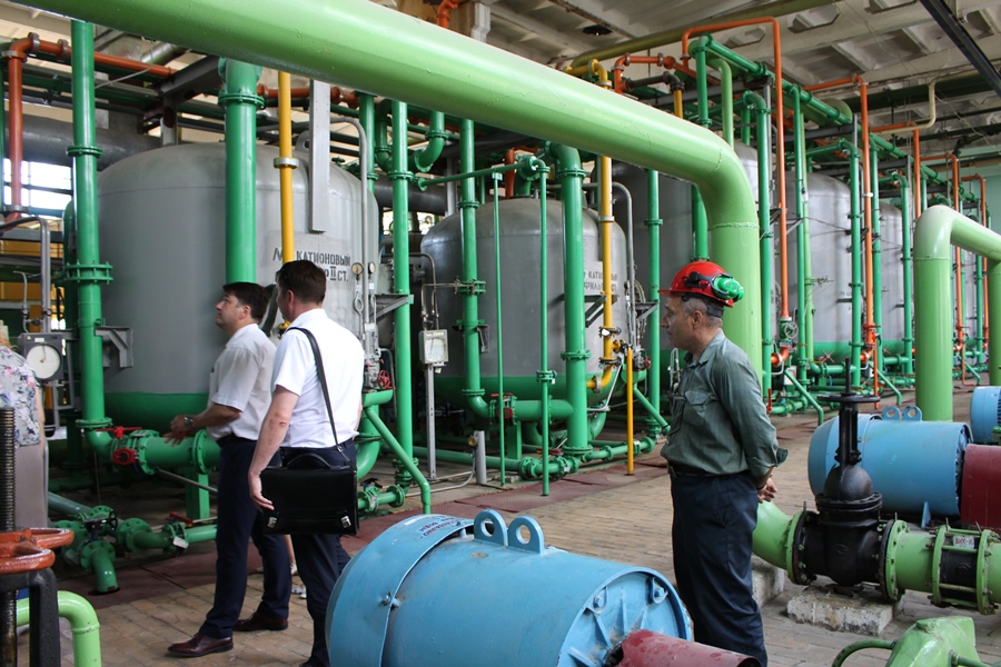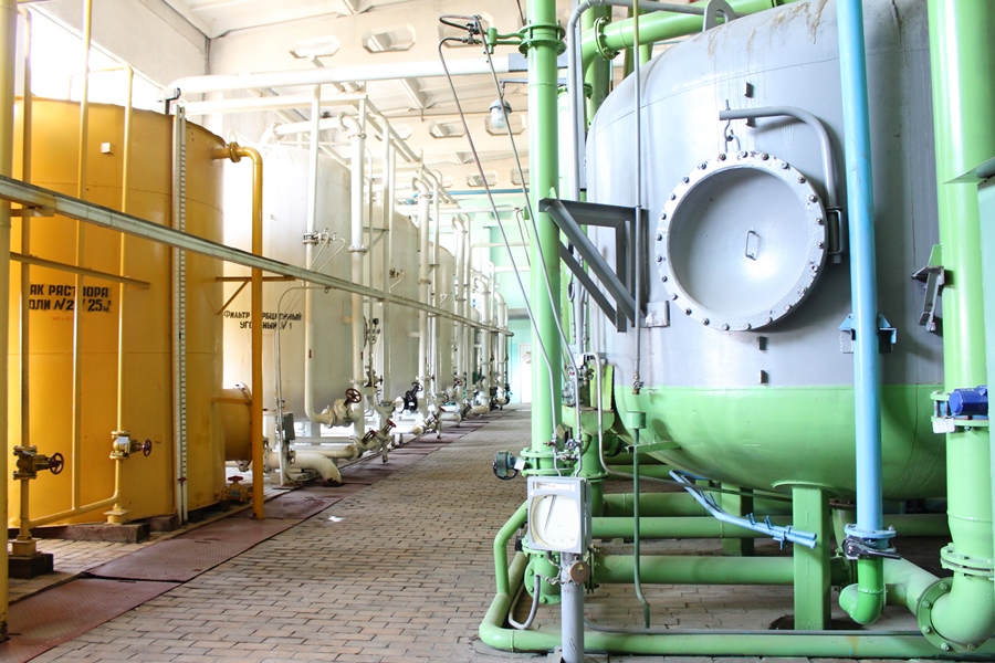 Когда участники семинара подошли к химическому цеху, им предложили познакомиться с ним ближе. Это очень важное производственное подразделение. Здесь природную воду подготавливают к использованию в производстве – очищают ее от механических примесей, солевых соединений. Это делается для того, чтобы не допустить в оборудовании образования накипи. Из просторного фильтровального зала, оборудование которого представляло сложную систему многочисленных труб и огромных емкостей, участники семинара прошли в щит управления химического цеха. Здесь начальник цеха Тереза Ганичева более подробно рассказала о процессе очистки и особенностях работы подразделения.