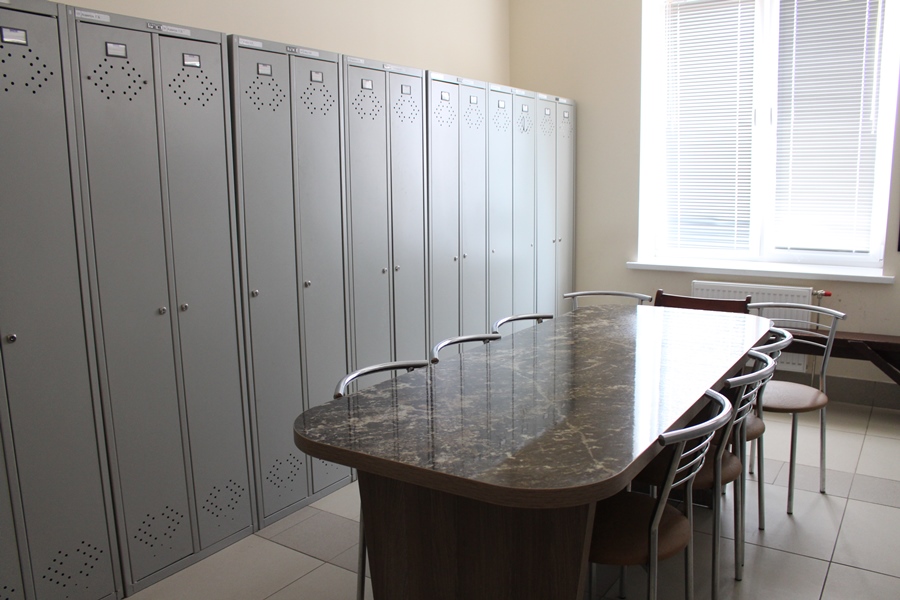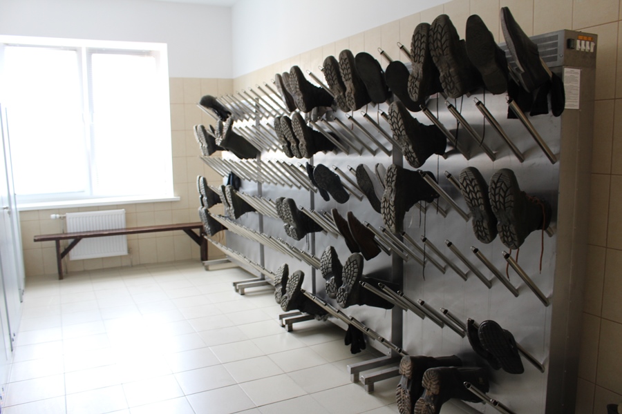 Идем дальше по промышленному «городку». А вот и новое административно-бытовое здание, куда в конце 2018 года переехал персонал района тепловых сетей, а также службы механизации и транспорта. Кроме кабинетов администрации, здесь оборудованы классы для обучения персонала и другие. Заместителей директоров по идеологии особенно заинтересовало обустройство бытовых помещений. В них впечатляет всё: от эстетики интерьеров и удобной мебели до жалюзи и цветов на окнах и электросушилок для рук.