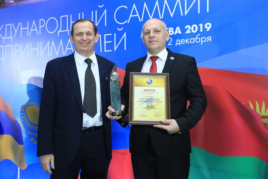 Приятно было узнать, что в 2019 году звания лауреата Международной премии «Признание» удостоилось ГП «Конус» РУП «НПЦ НАН Беларуси по механизации сельского хозяйства». А директор предприятия Андрей Жамойда за значительные успехи в ведении бизнеса и плодотворную деятельность, способствующую развитию экономики своей страны, был отмечен на Международном саммите предпринимателей нагрудным знаком «Заслуженный руководитель».