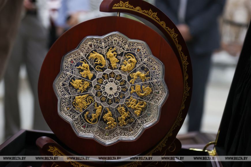 Монета выделяется и необычной формой: она выполнена в виде двенадцатиугольника - такое решение в Беларуси применили впервые. А ее параметры делают ее уникальной на рынке нумизматических изделий в мире. Для Беларуси это абсолютный рекорд: ранее самой тяжелой была килограммовая монета "Крыж Еўфрасінні Полацкай", и выпуск "Кітайскі каляндар" установил новый максимум по массе.