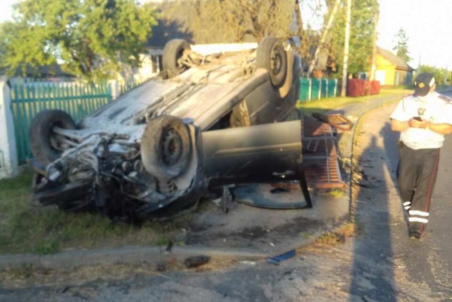 В Лидском районе автомобиль влетел в забор и перевернулся. Водитель оказался нетрезв