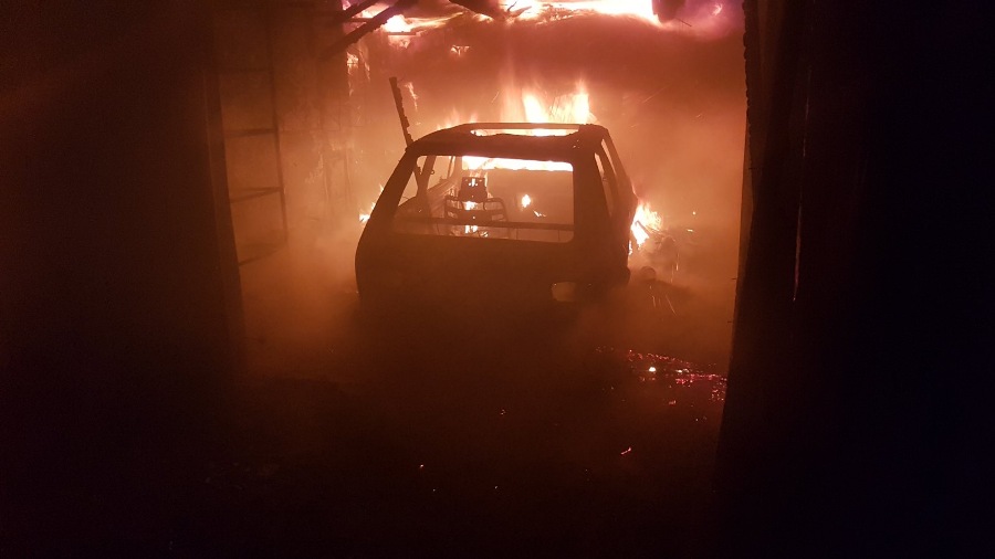 В Лидском районе горела хозпостройка, а вместе с ней и автомобиль