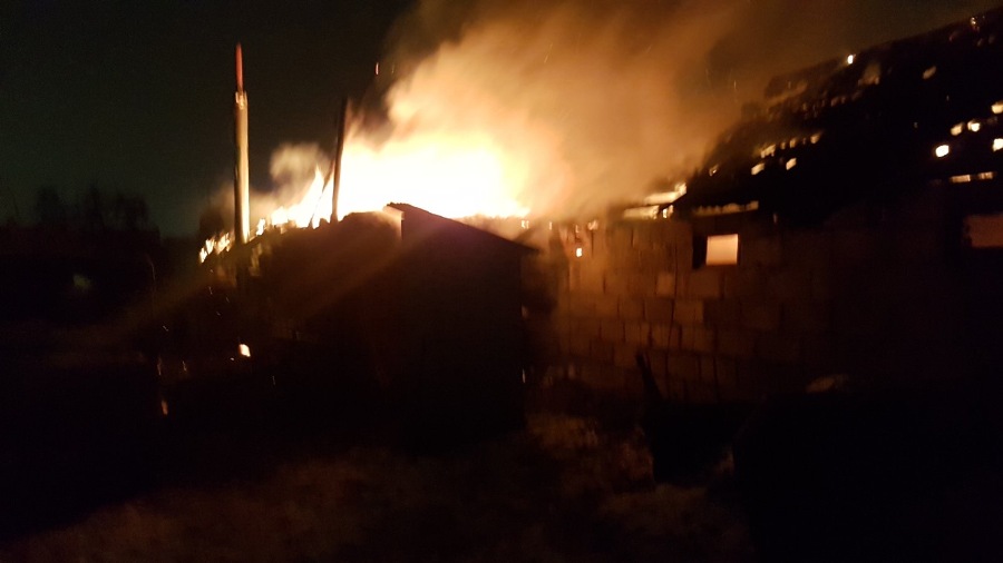 Прибывшие на место вызова первые подразделения МЧС обнаружили, что кровля хозяйственной постройки объята пламенем, а огонь уже успел распространиться на соседнюю постройку. Они незамедлительно принялись к тушению возгорания.