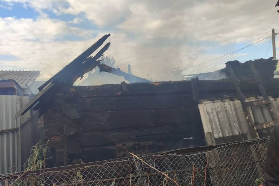 Работники МЧС ликвидировали пожар. Огонь полностью уничтожил хозяйственное строение, повредил кровлю рядом стоящего дома. Люди не пострадали. Причинен материальный ущерб. Причина пожара устанавливается.