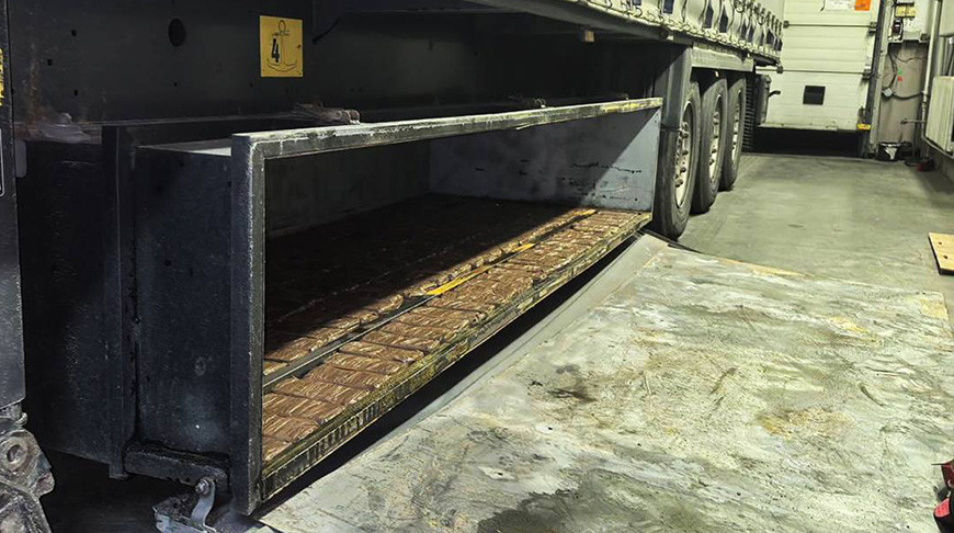 Грузовик въезжал в Беларусь через пункт пропуска "Козловичи". Брестские таможенники направили его на осмотр с применением инспекционно-досмотрового комплекса. Сканограмма показала наличие нехарактерного затемнения в нижней области полуприцепа на латвийских регистрационных номерах. "При дальнейшем демонтаже установлены места сокрытия - тайники с наркотиком были оборудованы в полу инструментальных ящиков полуприцепа. Вещество было направлено на экспертизу в ГКСЭ по Брестской области, которая подтвердила, что это гашиш", - отметили в Государственном таможенном комитете.