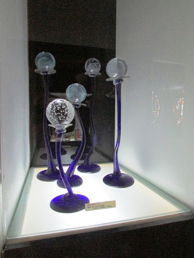 Мы оказываемся в музее. Это большое и просторное помещение, где за стеклом (какой каламбур, однако) выставлены различные вещи из стекла. По словам Галины Моисеевны, некоторые из них можно считать антиквариатом – настолько богатая у них история. Есть даже ваза с портретом Брежнева – стеклянная, довольно внушительного размера.