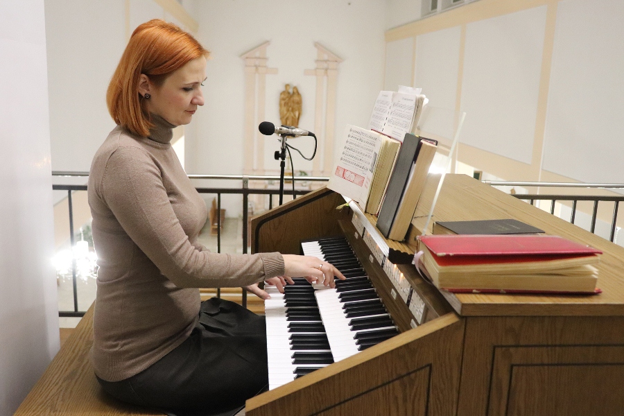 Задача органа в католическом храме – помочь верующим в молитве, создать необходимое настроение. В руках музыканта инструмент становиться своеобразным оркестром. Органистка прихода Святой Семьи Наталья Бердник еще только осваивает этот необычный, нелегкий в техническом плане инструмент. Но первые успехи уже есть. Богослужения, которые проходят под музыку в исполнении Натальи – это нечто особенное, светлое и радостное.