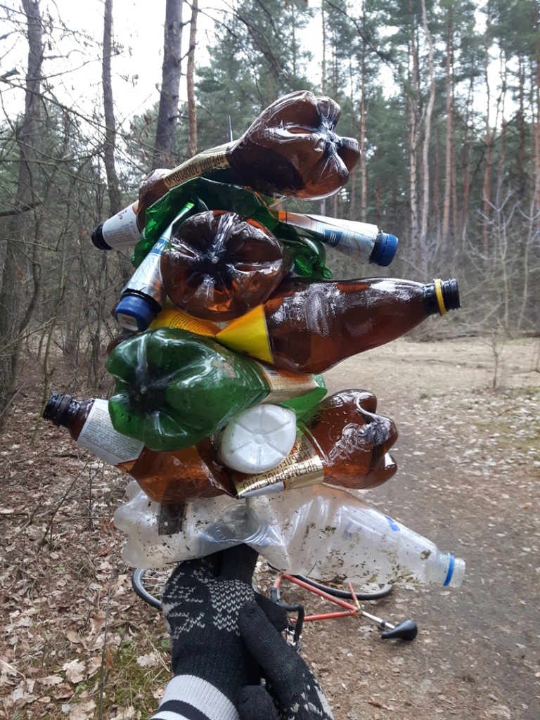 В эти выходные участники городского велосипедного сообщества «ВелоЛида» очистили часть территории в лесном массиве за Ледовым дворцом. Накануне лидчанин Павел Казак за пять минут насобирал пластиковый «шашлык» в лесу вблизи микрорайона Росляки.