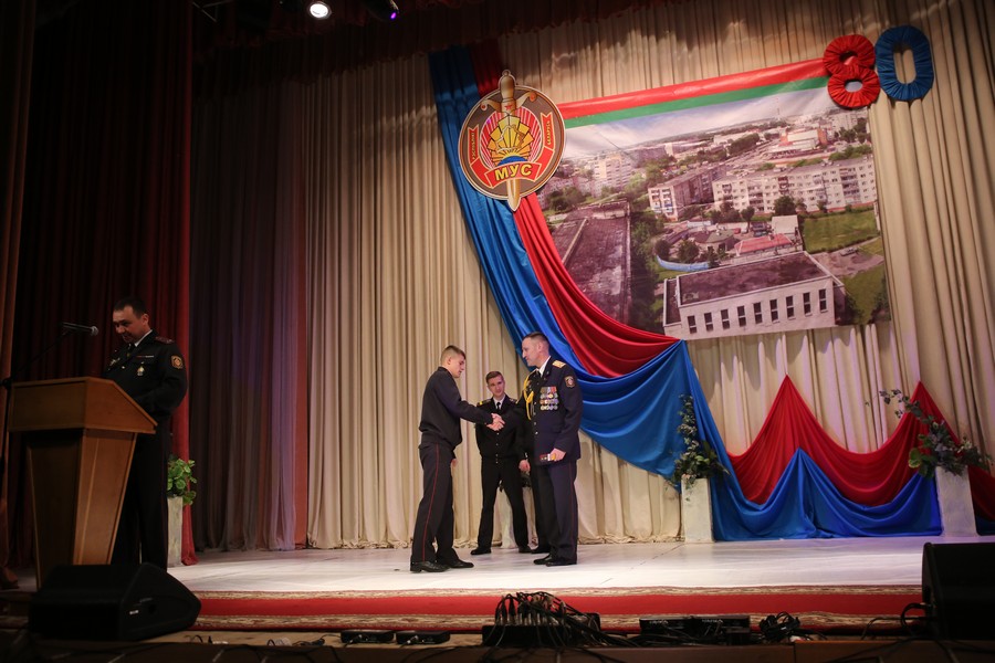 Але вернемся да 80-годдзя. Яго, напэўна, неардынарнасць была ў тым, што святкавалі юбілей адразу тры пакаленні: магчыма, будучыя міліціцыянеры, а сёння пакуль навучэнцы юрыдычнага класа СШ №10, цяперашнія супрацоўнікі аддзела, а таксама ветэраны службы. Сабраліся і сям’і захавальнікаў правапарадку, грамадскасць. Акрамя таго, павіншаваць калектыў РАУС з юбілеем, як і належыць, прыйшлі шматлікія госці – кіраўніцтва раёна, прадстаўнікі ўпраўлення ўнутраных спраў аблвыканкама, кіраўнікі сумежных структур, ваеннага блоку, кіраўнікі арганізацый горада і раёна.
