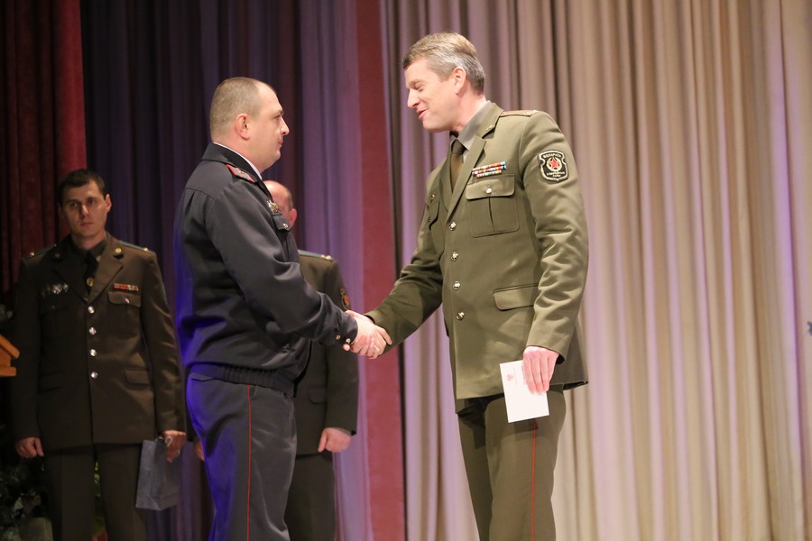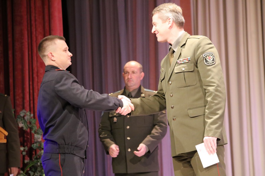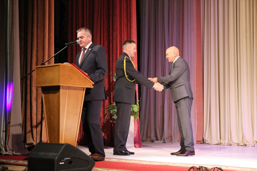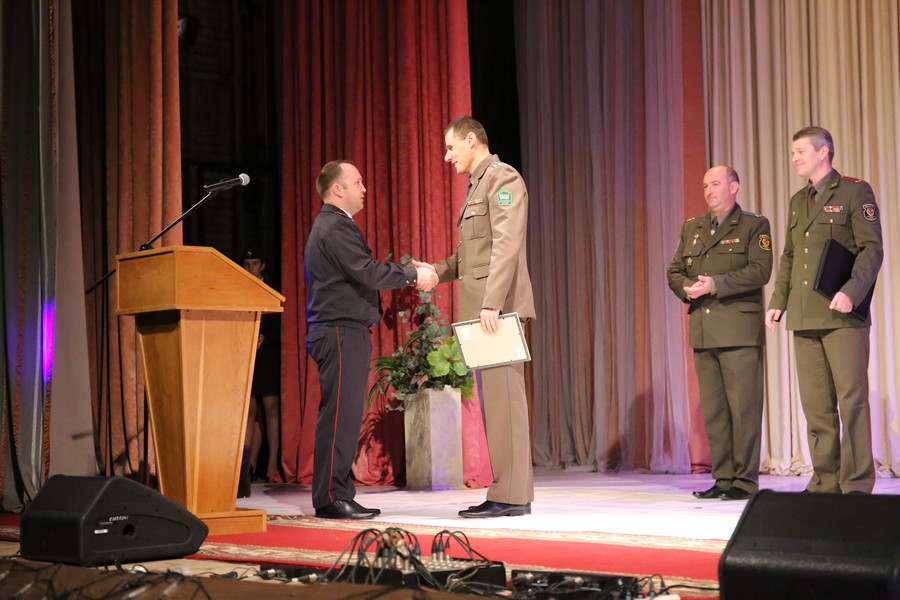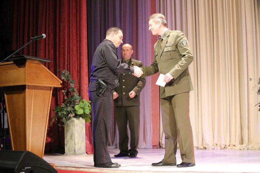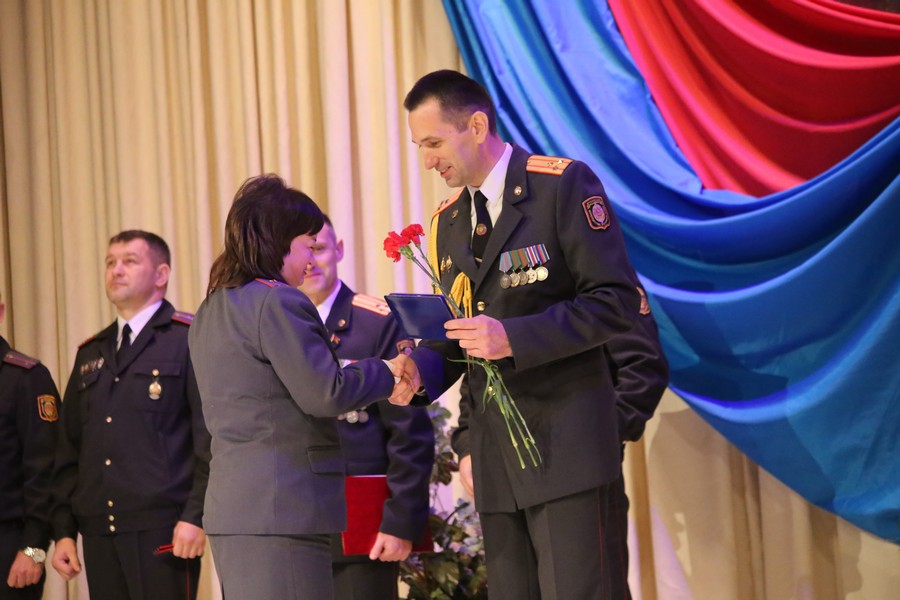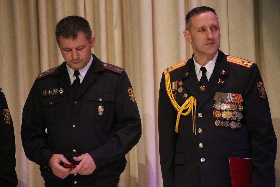…У гэты святочны дзень на сцэну, чаканячы крок, за заслужанымі ўзнагародамі выходзілі многія. Супрацоўнікі РАУС былі адзначаныя граматамі і падзякамі Лідскага райвыканкама і Савету дэпутатаў, грамадкімі арганізацыямі прафсаюзаў і “Белая Русь”, упраўлення ўнутраных спраў аблвыканкама, аддзела ўнутраных спраў райвыканкама, юбілейнымі медалямі, рознымі нагруднымі знакамі, былі прысуджаны таксама чарговыя званні – усіх узнагарод і не пералічыць. Але галоўна іншае – з вуснаў кожнага міліцыянера з гонарам гучала: “Служу Рэспубліцы Беларусь!”.