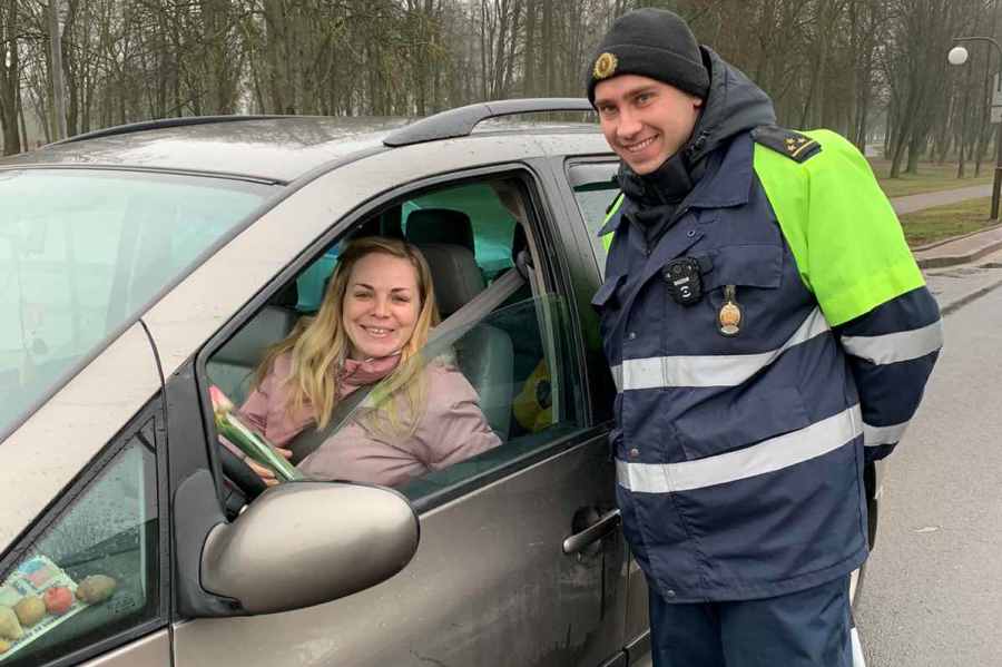 Весенние эмоции и цветы дарили сегодня лидчанкам сотрудники ГАИ