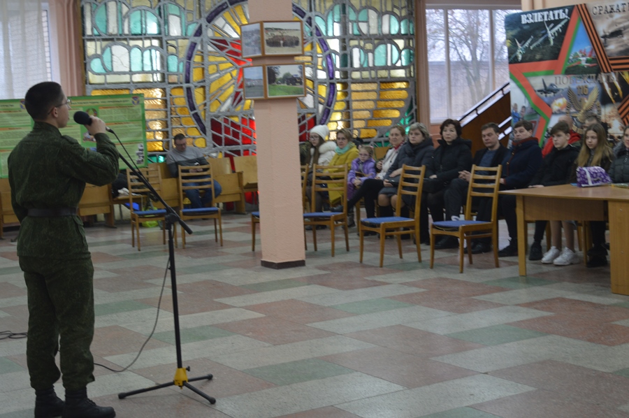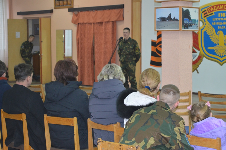 Гости были приглашены в клуб авиационной базы, где силами личного состава срочной службы было подготовлено небольшое, но эмоциональное и трогательное поздравление, приуроченное к празднику.