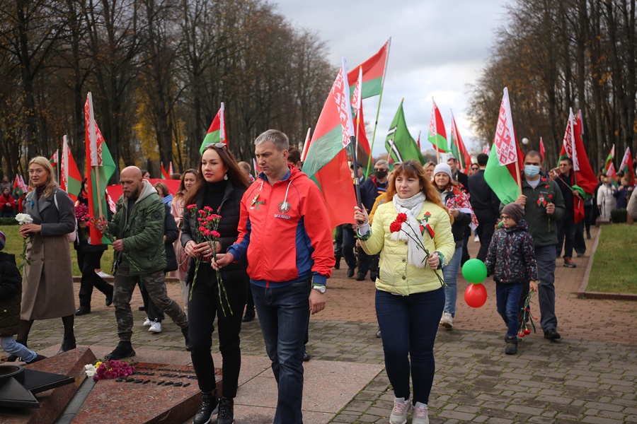 По пути они заехали в Лиду, где посетили замок, а также Курган Бессмертия, где вместе с представителями районной власти и горожанами возложили цветы к Кургану Бессмертия.