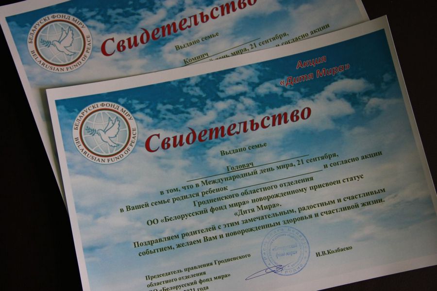 К значимой дате на Лидчине приурочена хорошая традиция – акция «Дитя мира», которая заключается в чествовании мам, родивших детей 21 сентября. Как стало известно журналисту «Лідскай газеты», в этом году в Международный день мира на свет появились две лидчанки. Девочки родились у Дарьи Коминч, учащейся профессионального лицея мелиоративного строительства, и у Юлии Головач, маркетолога Лидского хлебозавода. Молодые мамы уже определились с выбором будущих имен своим дочуркам – София и Дарья.