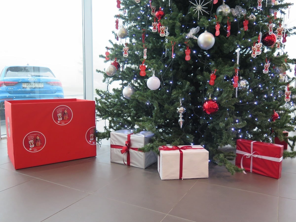 Новогодние елки, украшенные открытками с желаниями детей, установлены в УКП ТЦ "Постдам" и в магазине Дом торговли. Каждый желающий может купить подарок, который указан в открытке. Подарок можно будет оставить в месте установки елки либо передать сотруднику Белорусского Красного Креста. Позже подарок доставят ребенку, который находится в сложной жизненной ситуации.