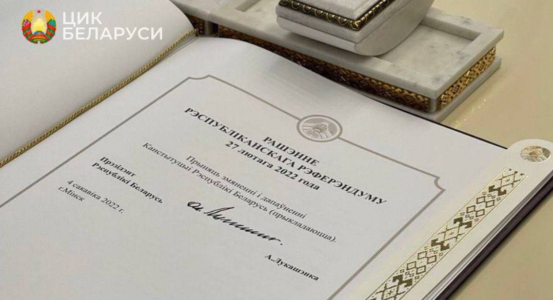 Сегодня вступает в силу решение республиканского референдума.Напомним, 27 февраля состоялся республиканский референдум по вопросу внесения изменений и дополнений в Конституцию, который явился реальной конституционно-правовой формой осуществления власти народа. За принятие изменений и дополнений Конституции Республики Беларусь проголосовало 4 440 813 граждан, что составило 82,86% от общего числа лиц, принявших участие в голосовании.