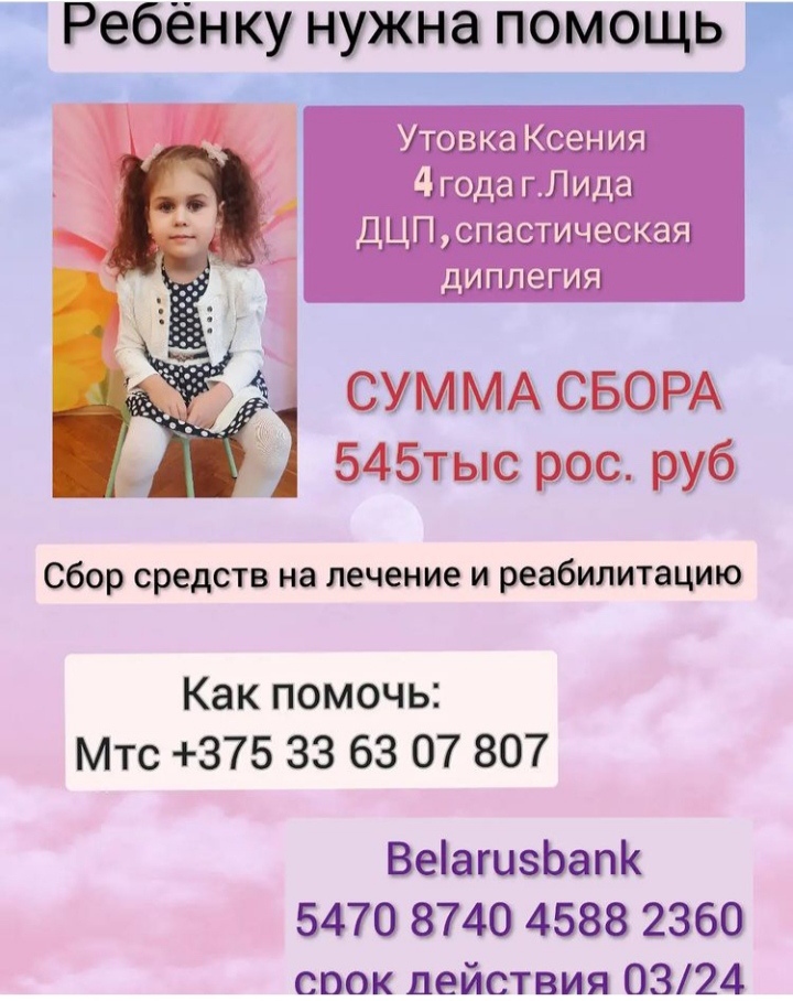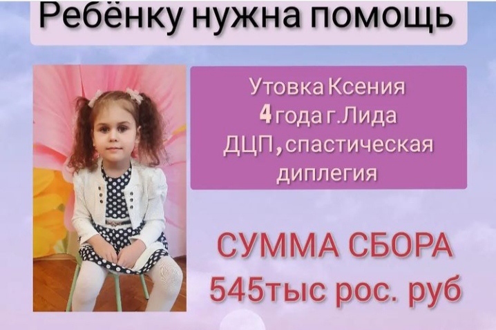 Маленькой лидчанке Ксюше Утовке нужна большая помощь добрых людей