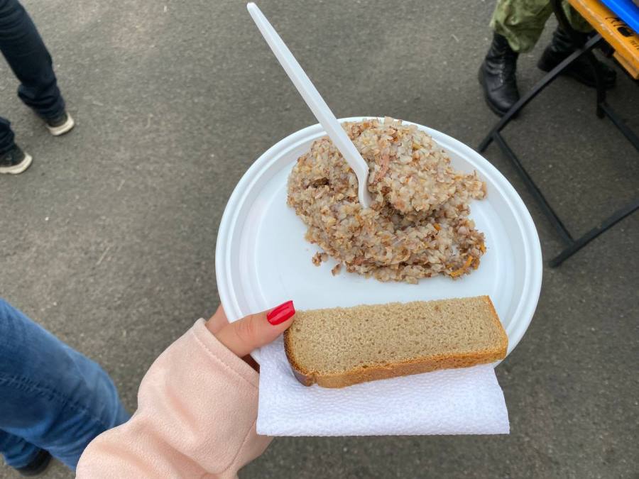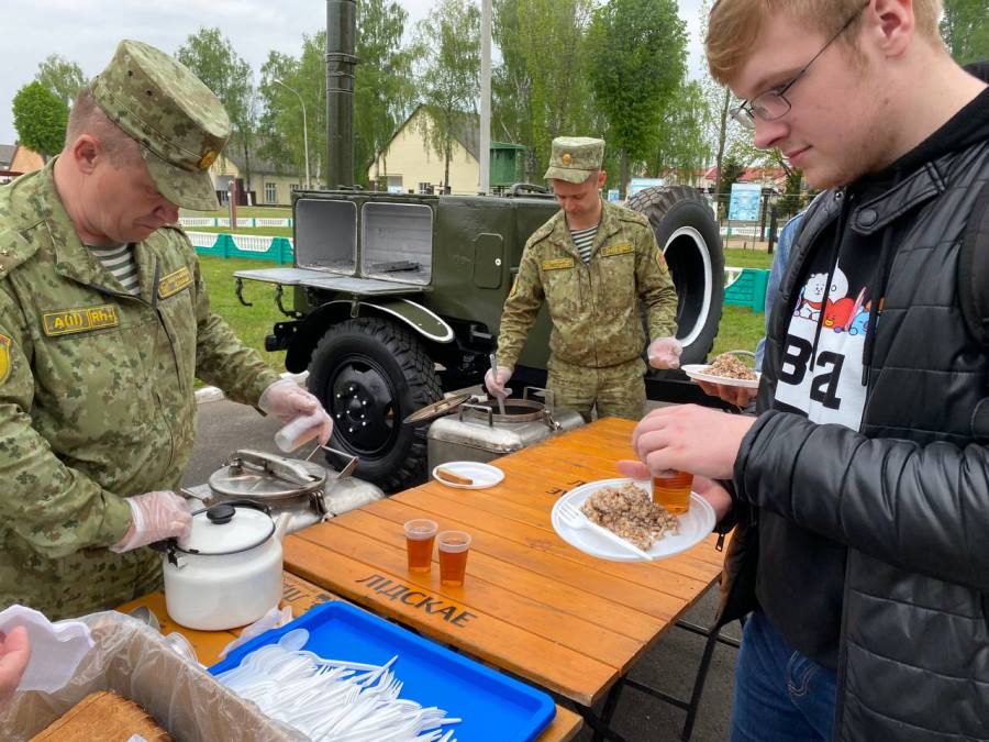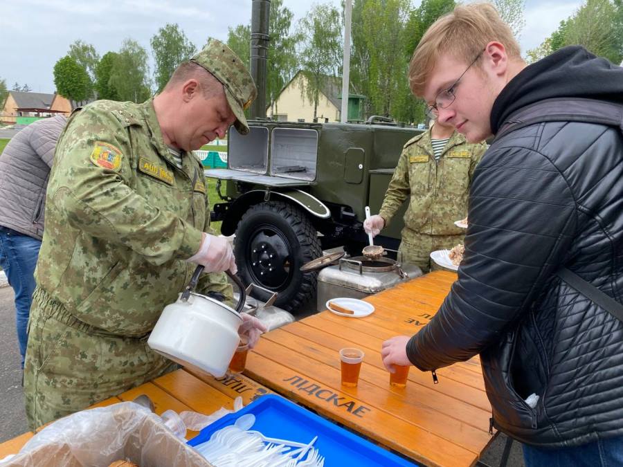 После принятия присяги военнослужащими срочной службы родителям и близким предлагают кашу и чай.