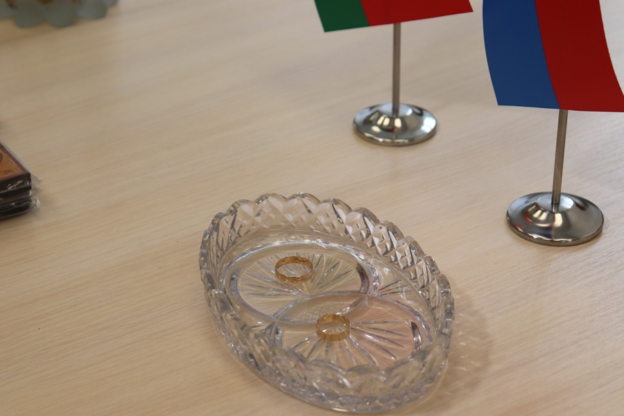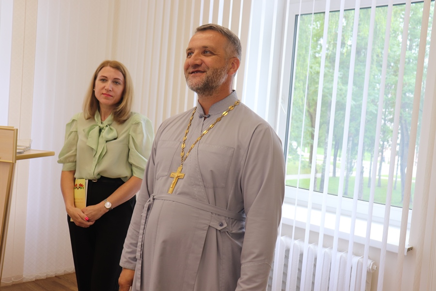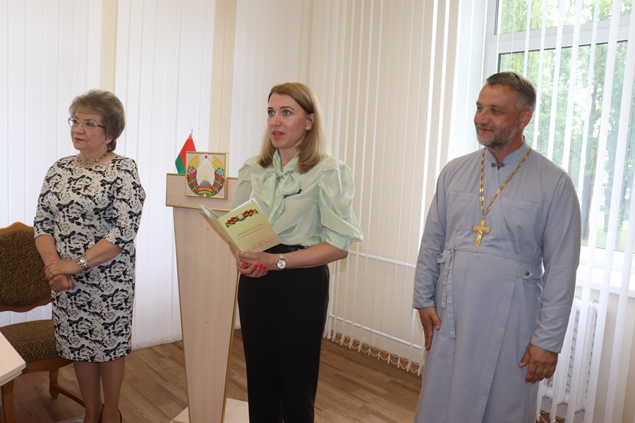 Помимо работников загса слова поздравления и напутствия на семейную жизнь говорил им исполняющий обязанности благочинного Лидского округа протоиерей Сергий Андруховец. Также отец Сергий вручил молодоженам на память небольшие подарки: иконку и книгу. Символичным был и тот факт, что после того как вступающие в брак обменивались кольцами, им преподносили букетики ромашек.