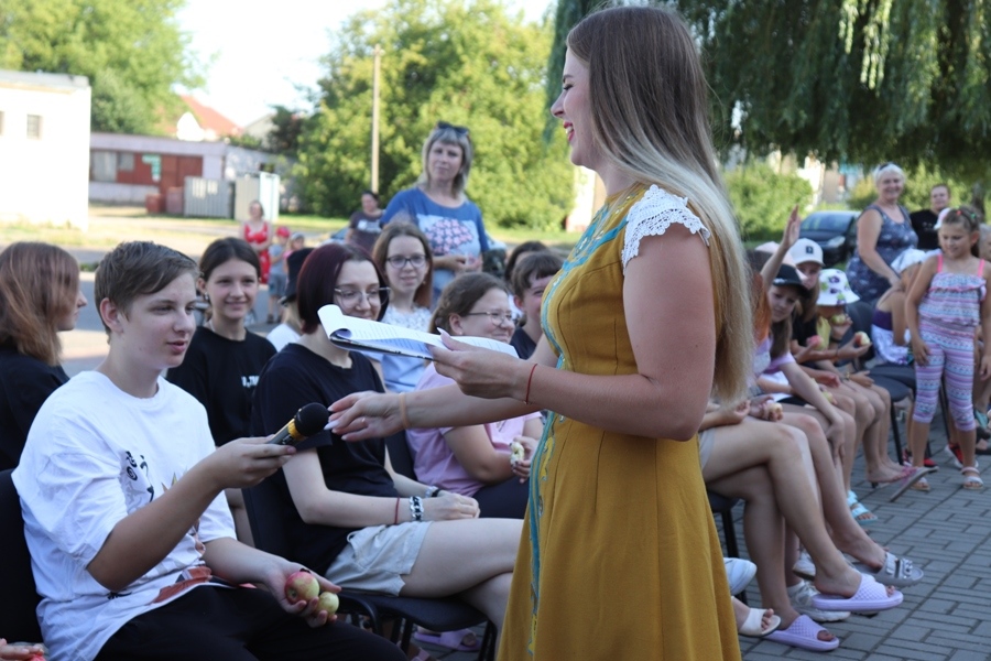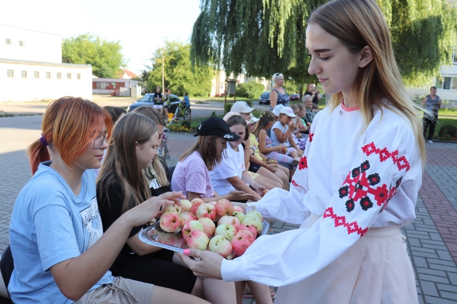 Падчас імпрэзы размова ішла пра новы ўраджай садавіны, і, вядома, пра яблыкі. Дарэчы, адным з персанажаў тэатралізаванага дзеяння з гульнямі, конкурсамі была Яблынька.