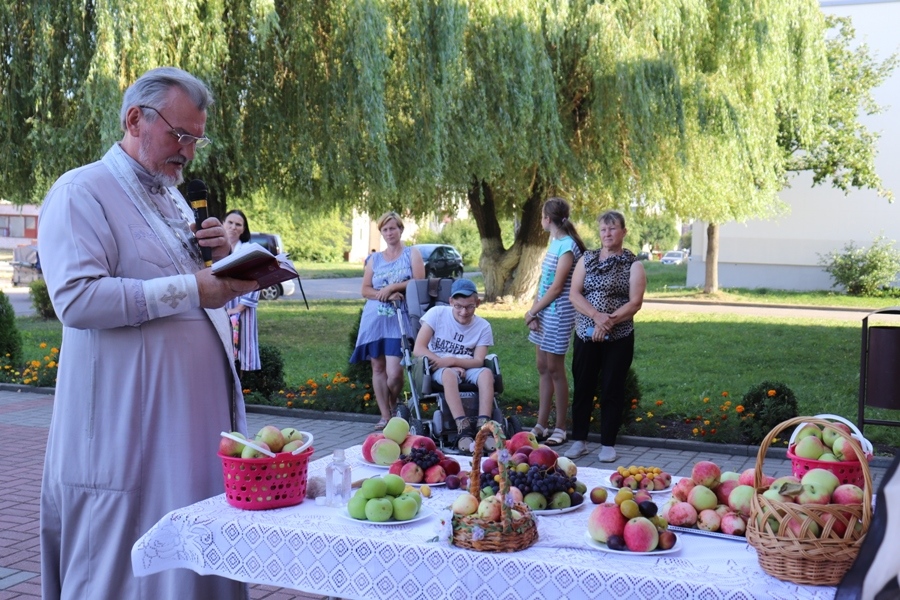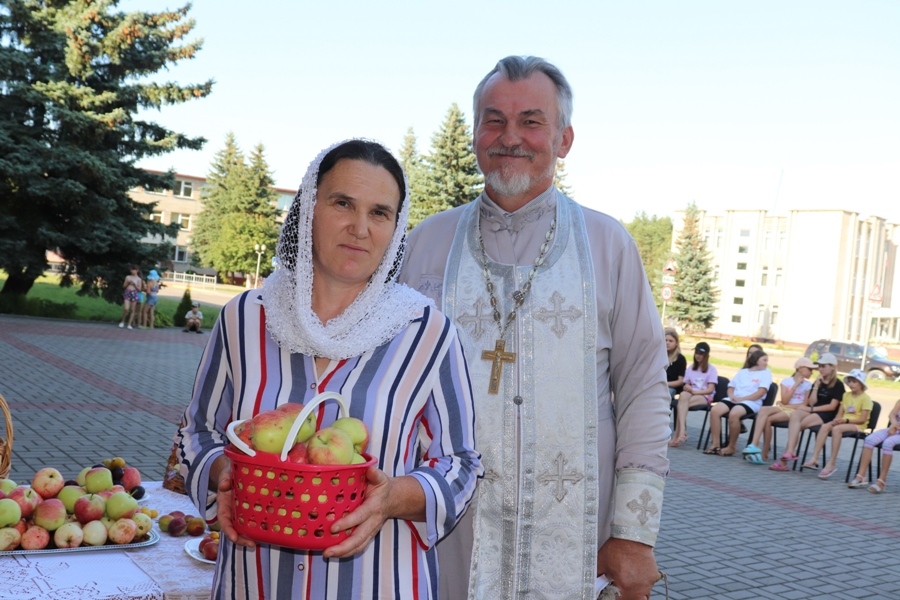 – Зараз па рэлігійных канонах ідзе Успенскі пост, і ўдзел ва ўвесяляльных мерапрыемствах прымаць не належыць, але я не мог не адгукнуцца на просьбу культработнікаў прыйсці на арганізаванае імі фальклорнае свята. Зранку я правёў службу ў царкве ў Мыто, затым наведаў прыхаджан Баброўскай царквы, пад самы вечар адслужу малебен у храме Дзітвы. І разам з тым пэўны час адвёў для таго, каб пагутарыць з тымі, хто сабраўся ля Дома культуры. Вы, напэўна, заўважылі, колькі сярод прысутных моладзі? Вельмі хацелася ім данесці, што сутнасць Яблычнага Спасу не толькі ў тым, каб асвяціць дары новага ўраджаю. 19 жніўня – свята Пераўтварэння Божага. Па біблейскім паданні, Бог паклікаў трох сваіх вучняў на гару Фавор і стаў там маліцца. Вучні ўбачылі, як пераўтварылася яго адзенне, а твар пасвятлеў. Дык вось, Бог паказаў, што пераўтварэнню папярэднічала праца: перад гэтым быў нялёгкі шлях на гару Фавор. І кожны можа зняніць жыццё да лепшага, толькі трэба прыкладаць старанні і намаганні. А адна з традыцый Яблычнага Спасу – асвячэнне яблыкаў і іншай садавіны.