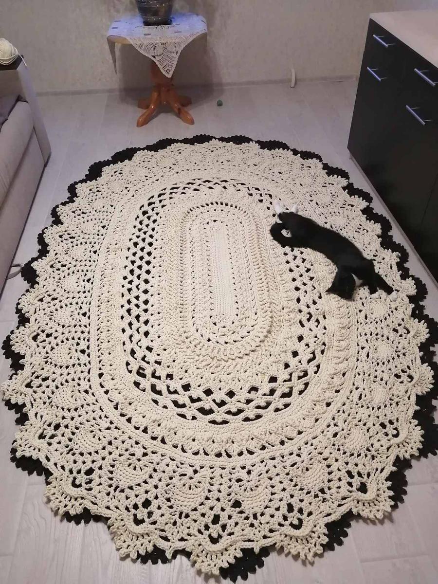 Итак, первый мой эксперимент – ковры из полиэфирного шнура. Мало того что имеют потрясающий декоративный эффект, они являются гипоаллергенными (не накапливают пыли) и легко чистятся, а при необходимости еще и стираются. Шнур российских производителей по цене делает ковер «золотым», даже если его вязать для себя. Сделать его доступным для покупателей позволил наш белорусский производитель из Могилева.