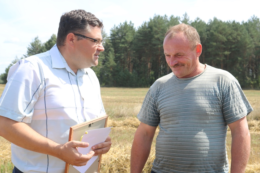 Наша встреча с Антонием Дикевичем состоялась не случайно. В поле поздравить тысячника с его очередным рекордом (уже в седьмой раз он удостаивается этого почетного звания) приехали представители профсоюза работников АПК, хозяйства «Ходоровцы-Агро».