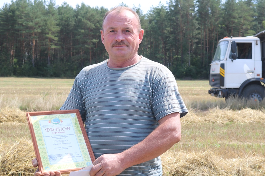 – В эту горячую пору перед каждым аграрием была поставлена ответственная задача – без потерь и своевременно собрать выращенный хлеб. А как известно, в этом благородном деле без самоотдачи, энтузиазма, любви к работе не обойтись. Желаю успехов и, конечно, здоровья. Спасибо за труд, – сказал, вручая грамоту и денежную премию водителю-тысячнику, председатель Лидской районной организации Белорусского профсоюза работников агропромышленного комплекса Александр Марсов.