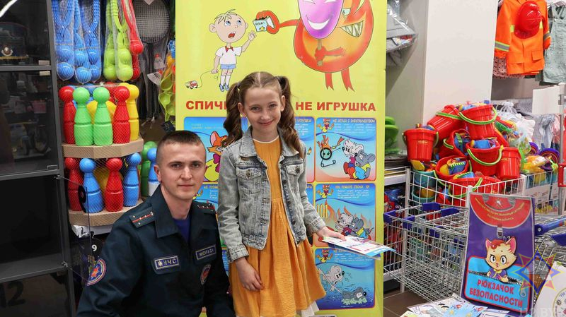 В рамках республиканской акции «Не оставляйте детей одних!» работники Лидского районного отдела по чрезвычайным ситуациям организовали работу интерактивной площадки «Безопасность» на базе магазина «Детский мир» в райцентре.
