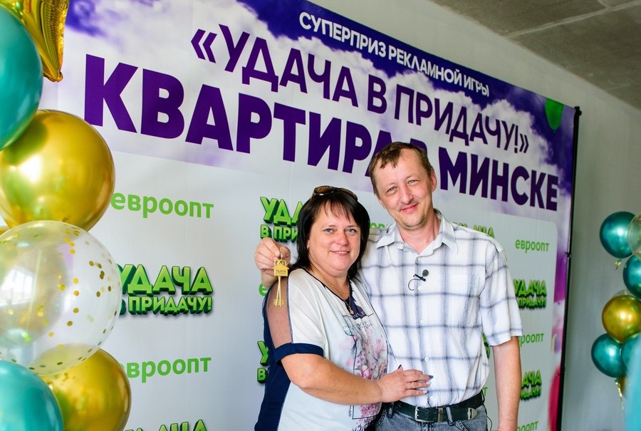 – Нам уже вручили ключи от новых апартаментов. Спасибо сети магазинов «Евроопт» за этот невероятный приз, а Вселенной – за то, что повезло именно нам!За 7 лет улетных побед «Удачей в придачу» было разыграно призов на сумму более 87 миллионов рублей, в том числе 121 квартира в Минске и 434 автомобиля. Но самое удивительное – подарки от «Евроопта» обычно достаются тем, кому они действительно нужны. И семья Шолоховых из Лиды – тому пример!