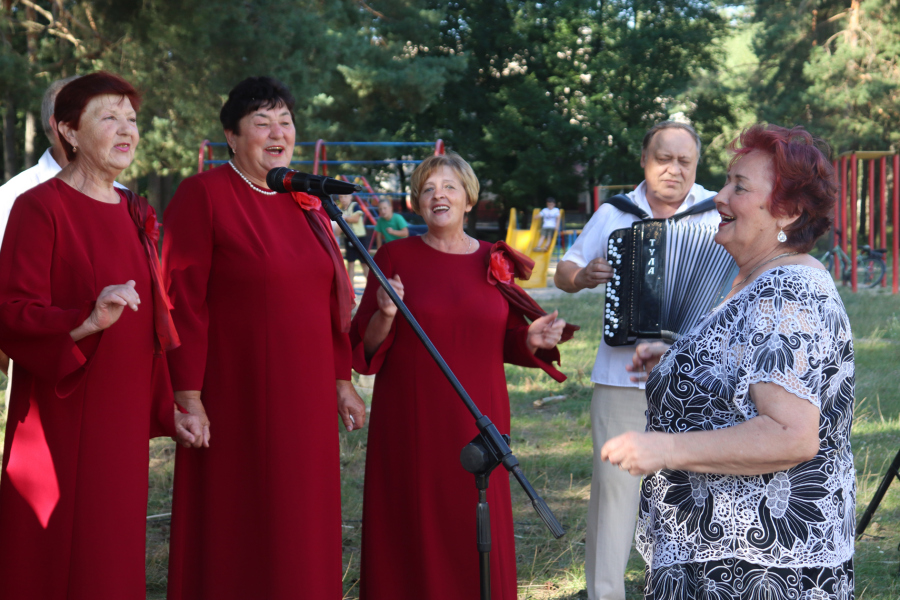 Тем не менее здесь встретишь уголки первозданной природы. Именно на такой площадке, расположенной рядом с общежитиями, в тени сосен и проходило мероприятие. Атмосфера праздника чувствовалась и в самой программе мероприятия в целом, и в выступлениях. С очень теплыми словами от имени местной власти к присутствующим обратился заместитель председателя Березовского городского Совета Александр Стенько. И все же тон празднику задало именно выступление народного хора ветеранов «Крыштальныя крыніцы» под руководством Раисы Хайдаровой. Зрители, как взрослые, так и дети, сначала немного робко, а потом активно, задорно пускались в пляс под музыкальные композиции. А березовские артисты пели о любви, счастье, мире.
