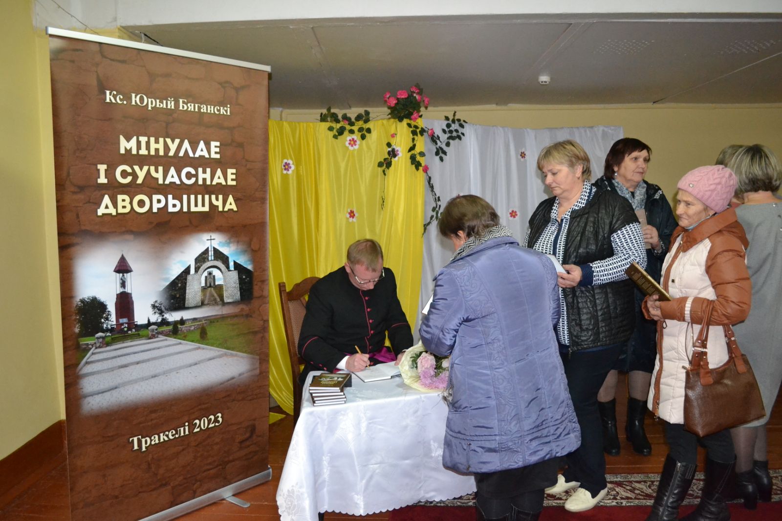 Урачыстасць у Дворышчы прадоўжылася і на другі дзень: у Доме культуры адбылася прэзентацыя кнігі ксяндза Юрыя Бяганскага “Мінулае і сучаснае Дворышча”.