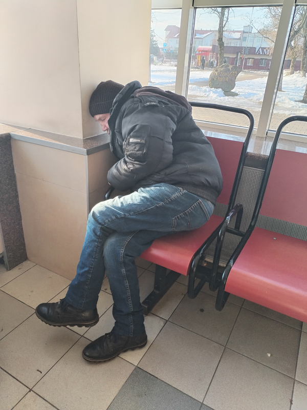 Среди других пассажиров, коротающих время в зале ожидания, их вычисляешь с ходу: по испитым равнодушным лицам, по грязной, явно с чужого плеча одежде, по каким-то бесформенным сумкам и пакетам, которые они раскладывают возле себя на скамейках. И, конечно, по запаху. Стойкое амбре из немытого тела, мочи и перегара буквально сшибает с ног. Встретить таких маргиналов можно и на Лидском автовокзале. – Представьте картину: сидят два «бомжа», разложив на сиденьях остатки еды, которые они нашли в урнах, – рассказывает лидчанка Лариса, которая каждый день добирается из города к себе в деревню на пригородном автобусе. – Хорошо, если сидят мирно. А порой среди них кипят самые настоящие страсти, даже драки случаются. Ну ведь нужно же как-то с этим бороться! – призывает женщина.