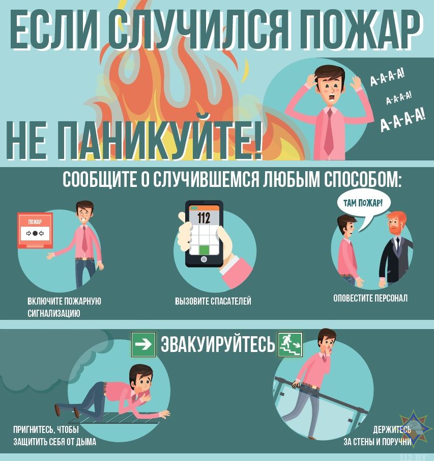 - Если вы видите, что не сможете справиться с огнем, и пожар принимает угрожающие размеры, срочно покиньте помещение: дышать надо через мокрую ткань, а двигаться как можно ближе к полу (там меньше дыма).
