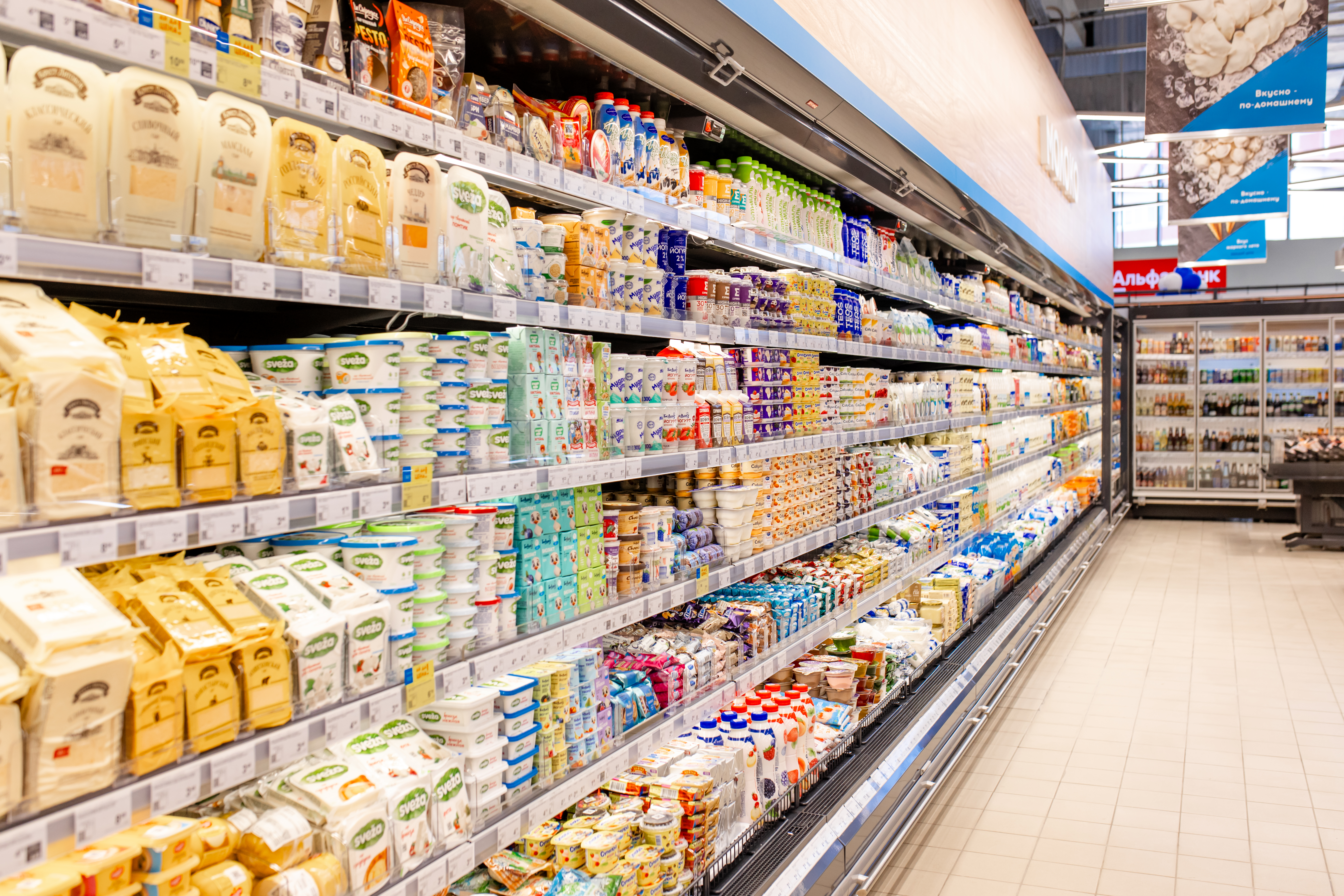 А внутри – целый мир. Хочется взять корзинку и медленно идти мимо полок: вот пекарня, где булочки и хлеб еще теплые, будто только из бабушкиной печи, тут – горячая ароматная пицца (ее готовят при вас, можно даже за процессом понаблюдать!), а рядом – отдел с салатами, где так и хочется сказать: «Положите всего понемногу».