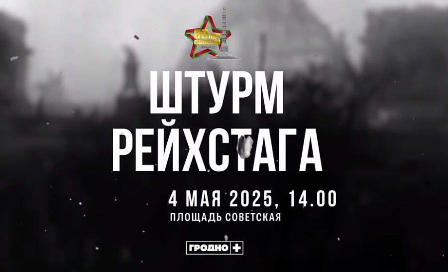 4 мая в 14.00 на площади Советской в Гродно воспроизведут события последних дней перед Победой. Дворец культуры текстильщиков превратится в «рейхстаг», над которым будет установлен купол. Кульминацией представления станет водружение на него Знамени Победы.
