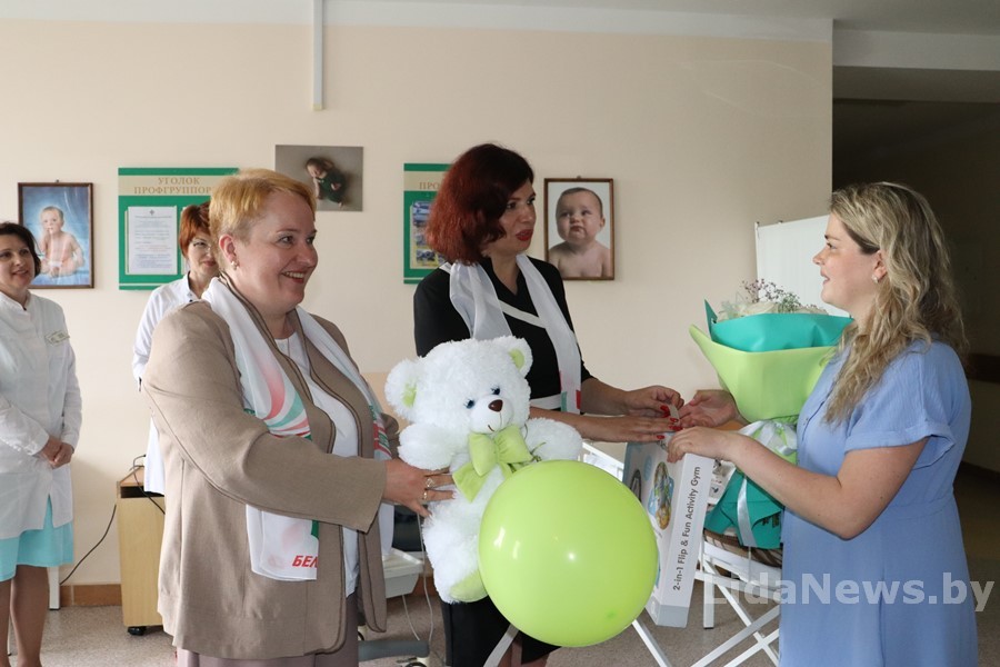 Представители ОО «Белая Русь» вместе с руководством Лидской ЦРБ посетили роженицу, вручили ей подарки и адресовали теплые пожелания здоровья, счастья и благополучия новорожденному и всей семье.