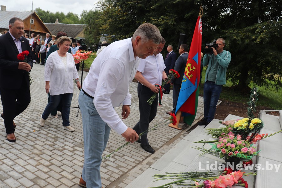 Сегодня в деревне Лесники Ходоровского сельсовета состоялся митинг-реквием «Нам не забыть ту роковую дату…». 6 августа 1942 года фашисты совершили чудовищное преступление: сожгли 99 домов, убили 104 жителя деревни, из которых 18 – дети. Погибшие похоронены на церковном кладбище в деревне Бобры, а в Лесниках в память о них установлена скульптурная композиция. Женщина в печали и мальчик- суворовец – это трагический символ, воплотивший в себе боль и скорбь о жертвах трагедии. Также память о погибших живет в сердцах тех, кто ежегодно 6 августа приходит к памятнику в центре деревни. А сегодня на митинге в Лесниках собрались руководители Лидского райисполкома, его отделов и служб, представители депутатского корпуса района, местных организаций и предприятий, общественность.