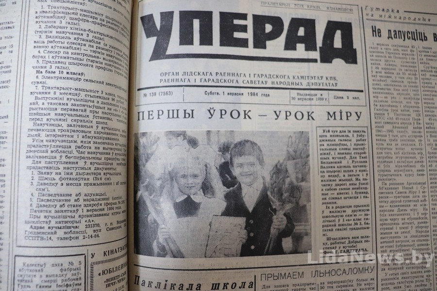 Першакласнікі 1984 года вырашылі паўтарыць сваё фота саракагадовай даўнасці ў газеце “Уперад”1 верасня 1984 года на ўрачыстай лінейцы ў СШ №3 (зараз – ліцэй №1) сярод дзясяткаў першакласнікаў карэспандэнт газеты “Уперад” (зараз – “Лідская газета”) Генадзь Гайдураў выбраў менавіта іх – Таню Белавокую і Руслана Валяка – у іх былі самыя прыгожыя і вялікія букеты. Кадр атрымаўся сапраўды лепшы: на тварах дзяцей – шчаслівыя ўсмешкі, у вачах – іскрынкі радасці. Вось як напісаў пра першакласнікаў карэспандэнт: “Для Тані і Руслана адсюль пачынаецца шырокі шлях у Краіну ведаў, а затым і ў вялікае жыццё. На пачатку дарогі яны ўзялі з сабой самае неабходнае – кветкі і буквар, як сімвал шчасця і пазнання. Іх прынялі ў вялікую дружную школьную сям’ю – залічылі ў 1 “А” клас сярэдняй школы №3, багатай сваімі традыцыямі”.
