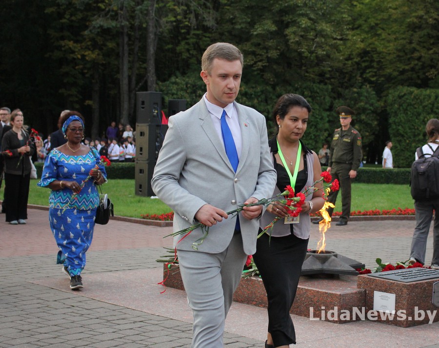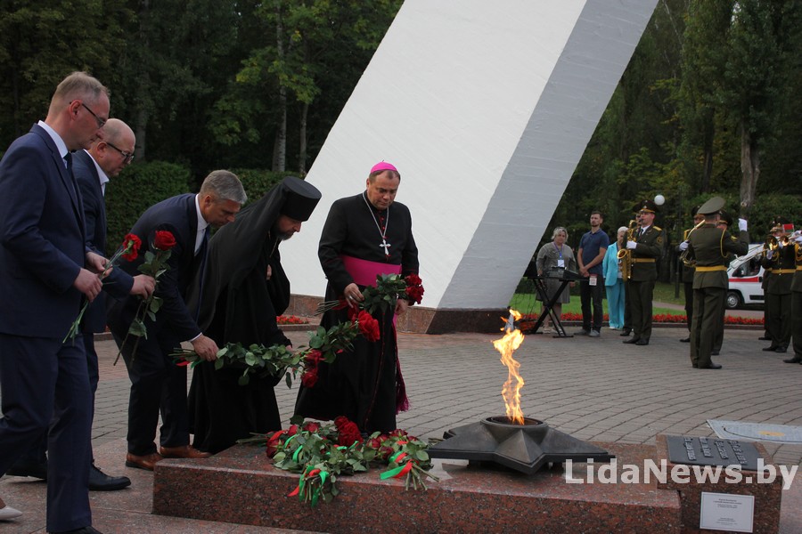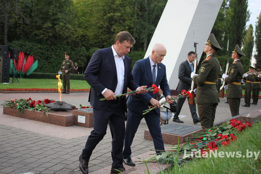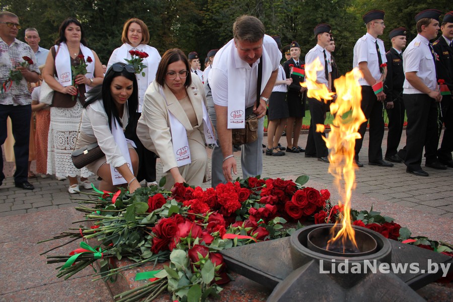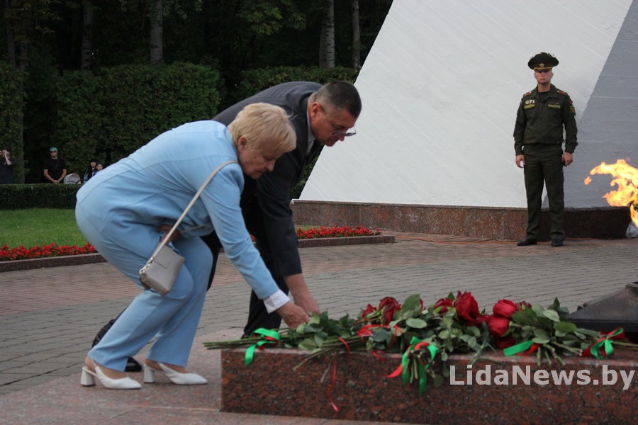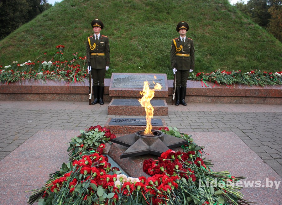 У Лідзе прайшла ўрачыстая цырымонія ўскладання кветак і вянкоў да Кургана Бессмяротнасці