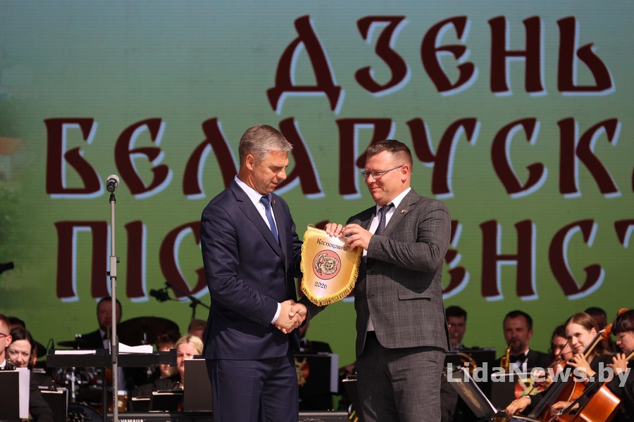 – Ад нас з вамi хачу выказаць словы самай шчырай падзякі Прэзiдэнту нашай краiны Аляксандру Рыгоравiчу Лукашэнку за тое, что Лiдчына была абрана сталiцай двух буйнейшых мерапрыемстваў у нашай краiне. У 2010 годзе на нашай зямлi ладзiлiся “Дажынкi”, а ў 2025 годзе – Дзень беларускага пiсьменства. Дзякуючы гэтым святам горад прыгажэў. Я хачу падзякаваць Мiнiстэрству iнфармацыi, абласному выканаўчаму камiтэту за супольную i, як мне здаецца, вельмi прадуктыўную работу. Таксама ўдзячнасць вам, шаноўныя гледачы, за тое, што вы знайшлi час і прыйшлi ўчора і сёння на тыя мерапрыемствы, якiя мы вам прапанавалi. Спадзяюся, што ад кожнага з iх вы атрымалi добрыя ўражаннi i цудоўны настрой, – адзначыў старшыня Лiдскага раённага выканаўчага камiтэта Аляксандр Вярсоцкi. Ён перадаў сiмвалiчны вымпел правядзення Дня беларускага пiсьменства старшыні Касцюковiцкага раённага выканаўчага камiтэта Вячаславу Максачову i пажадаў, каб на Магiлёўшчыне ў 2026 годзе свята атрымалася яшчэ лепшым, чым на Лiдчыне.