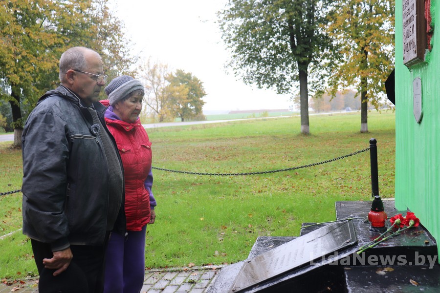Старший помощник прокурора Лидского района Лариса Витковская вместе с родственниками потерпевших: уроженкой хутора Хмелище, лидчанкой Анной Викторовной Вайник и бывшим жителем деревни Паперовцы, лидчанином Казимиром Казимировичем Рунцом, в сопровождении журналистов «ЛидаМедиаКомпании» отправились на место бывшего хутора Хмелище, где 10 августа 1942 года оккупанты совершили преступное злодеяние.